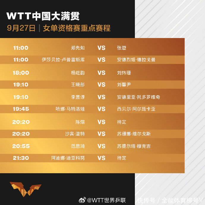 北京本领9月27日音问,2024年WTT中国大满贯,将伸开男女单打经历赛第二个比赛日的争夺。届时,共有薛飞、周恺、范念念琦、刘炜珊、陈熠等9名中国选手出战。其中,刘炜珊与杨屹韵献艺中国德比战。